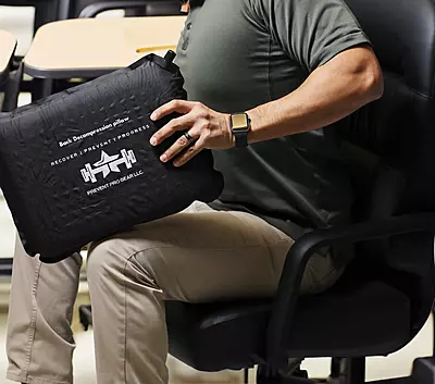 Back Decompression Pillow: A self-inflating, heavy-duty lumbar support pillow designed to reduce spinal disc pressure and increase blood flow during long shifts or travel.